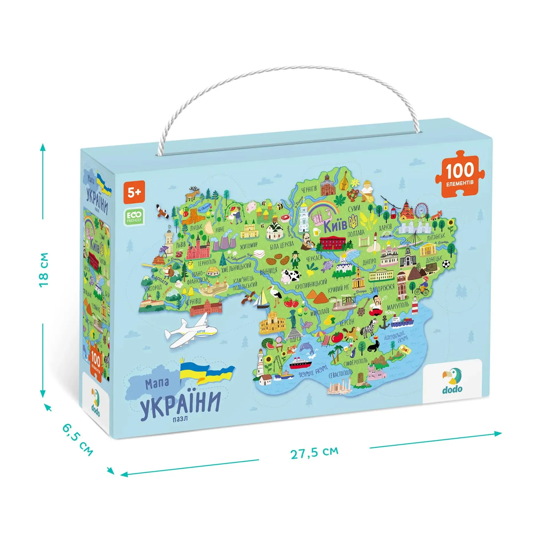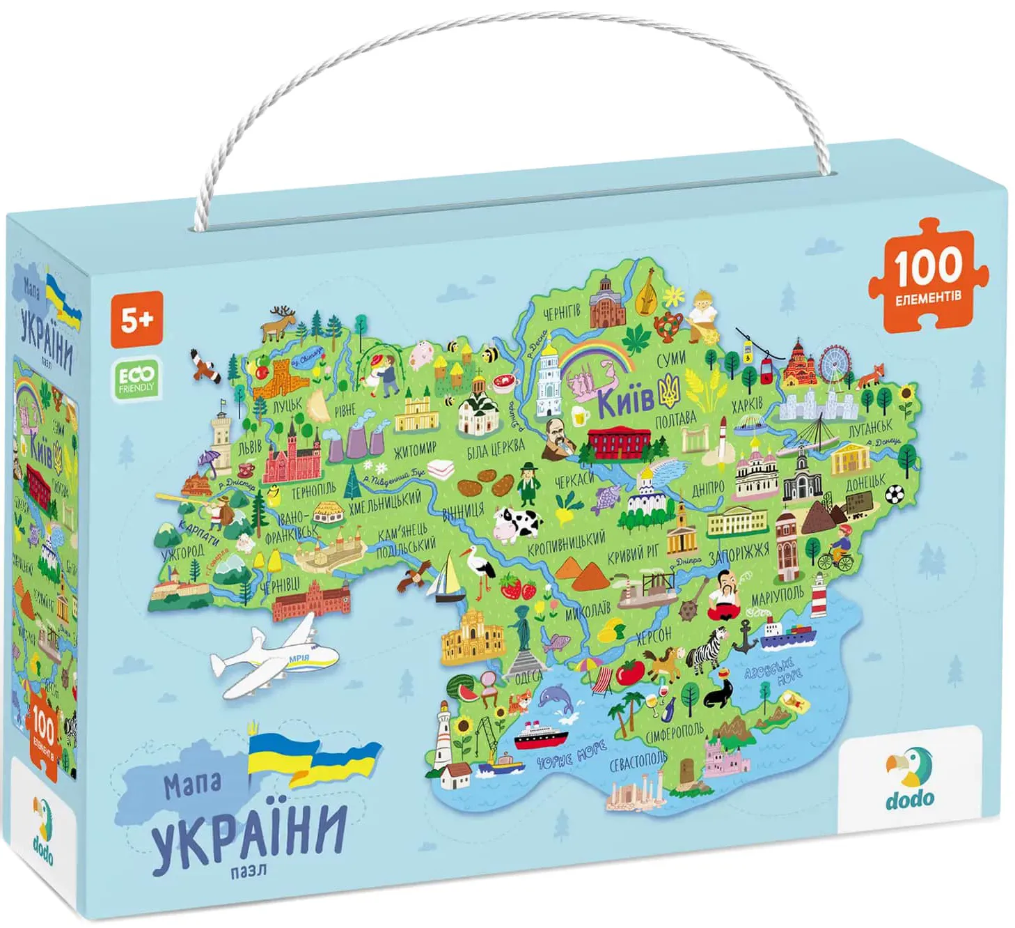 Дізнаємося більше про рідну Україну! Які відомі пам’ятки архітектури є у кожному регіоні, які тваринки населяють нашу країну, та які цікаві місця варто відвідати. Пазл виконаний з щільного картону, яскравий та зручний для гри. Ідеальний подарунок для маленьких дослідників та мандрівників.