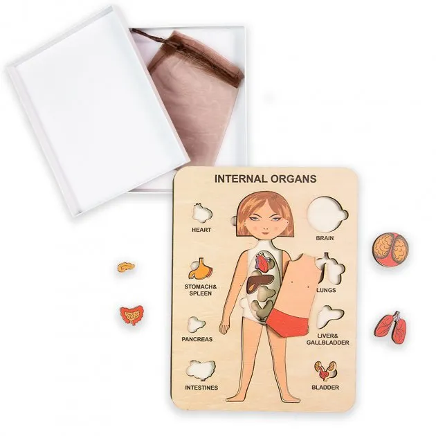 Всі знають як важливо розуміти, де розташовані органи в організмі людини. Особливо це важливо для малюка - знати і розуміти, що болить, щоб швидко і правильно розповісти про це дорослим. Наочно показати малюку, де знаходиться серце, легені, кишечник, печінка та мозок. Цікаві барвисті деталі візьмуть увагу дитини і точно зможуть зацікавити. А два мішечки в комплекті допоможуть зберігати всі деталі в порядку, а також перетворити вивчення на цікаву вікторину.