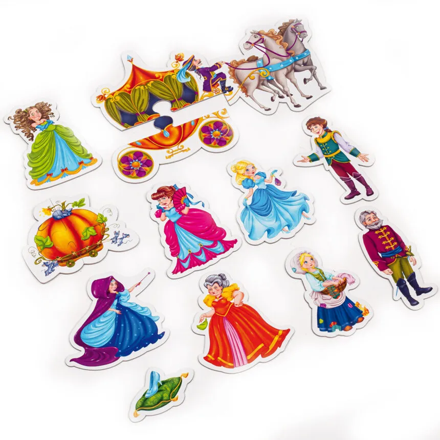 Влаштуйте справжню театральну постанову у себе вдома! Сюжет улюбленої казки «Попелюшка» та магніти з персонажами — у наборі.Читайте текст казки та викладайте на будь-якій магнітній поверхні гральні магніти, слідуючи за сюжетом.У процесі гри тренуємо читання, мовлення, уяву, логічне мислення та дрібну моторику.