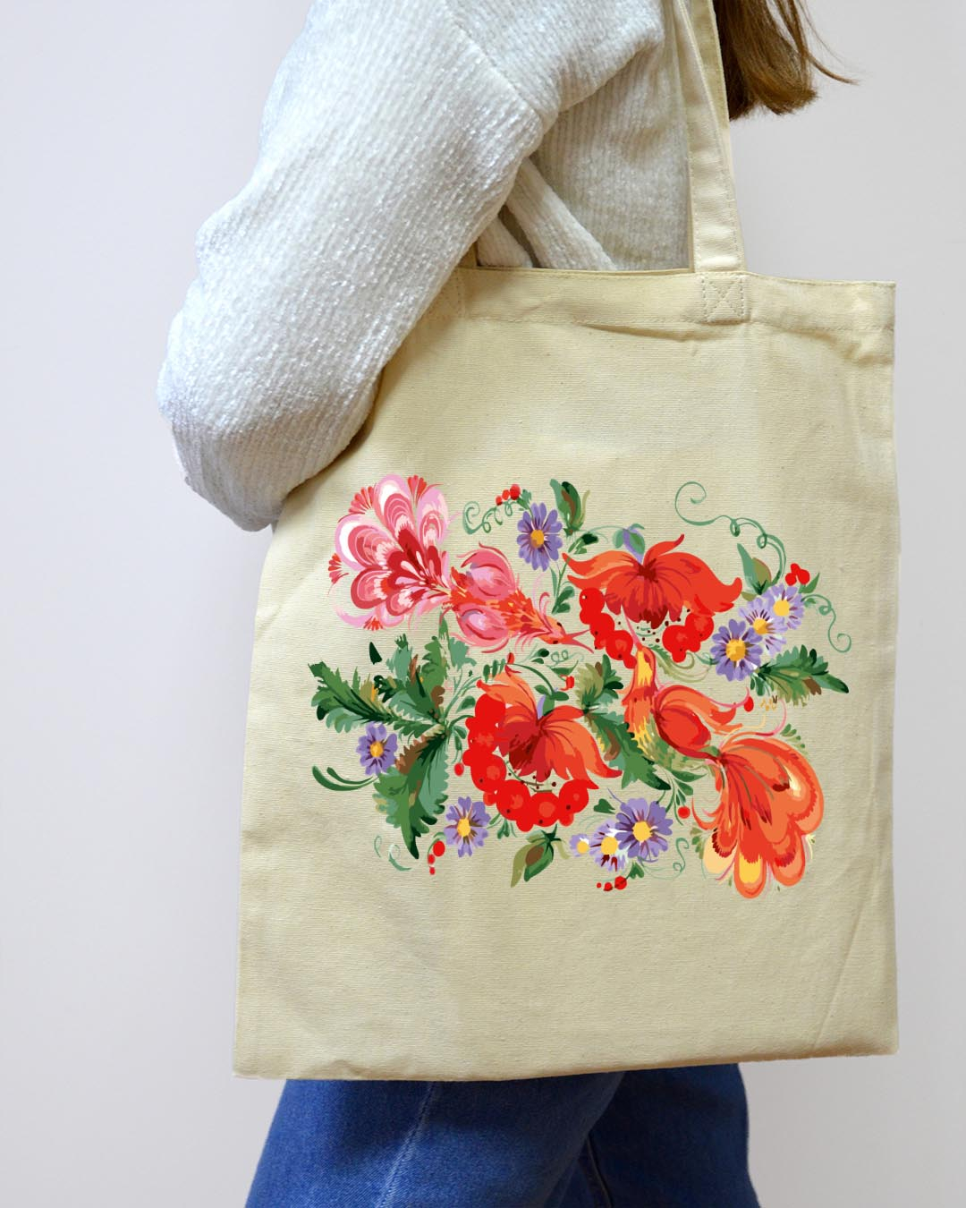 Екошопер Bookopt Петриківський розпис - Червоні квіти (BK4002)
