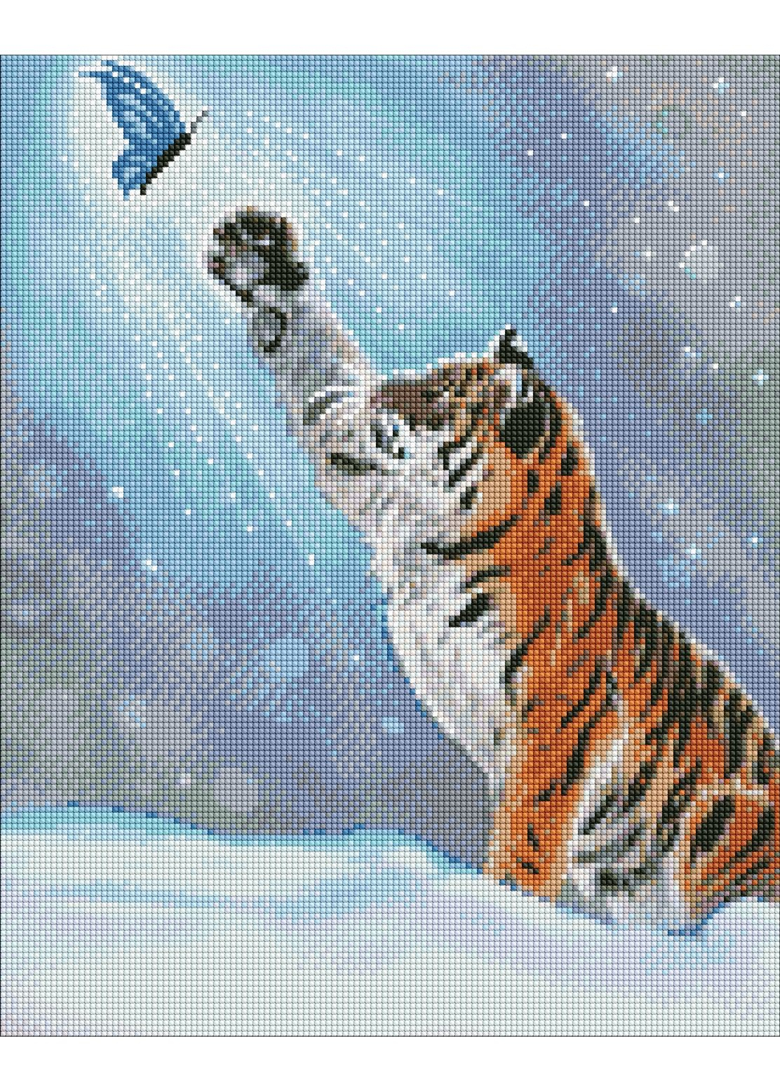 Алмазна мозаїка без підрамника Ідейка Забави тигреня з АВ стразами 40х50 см AMC7671