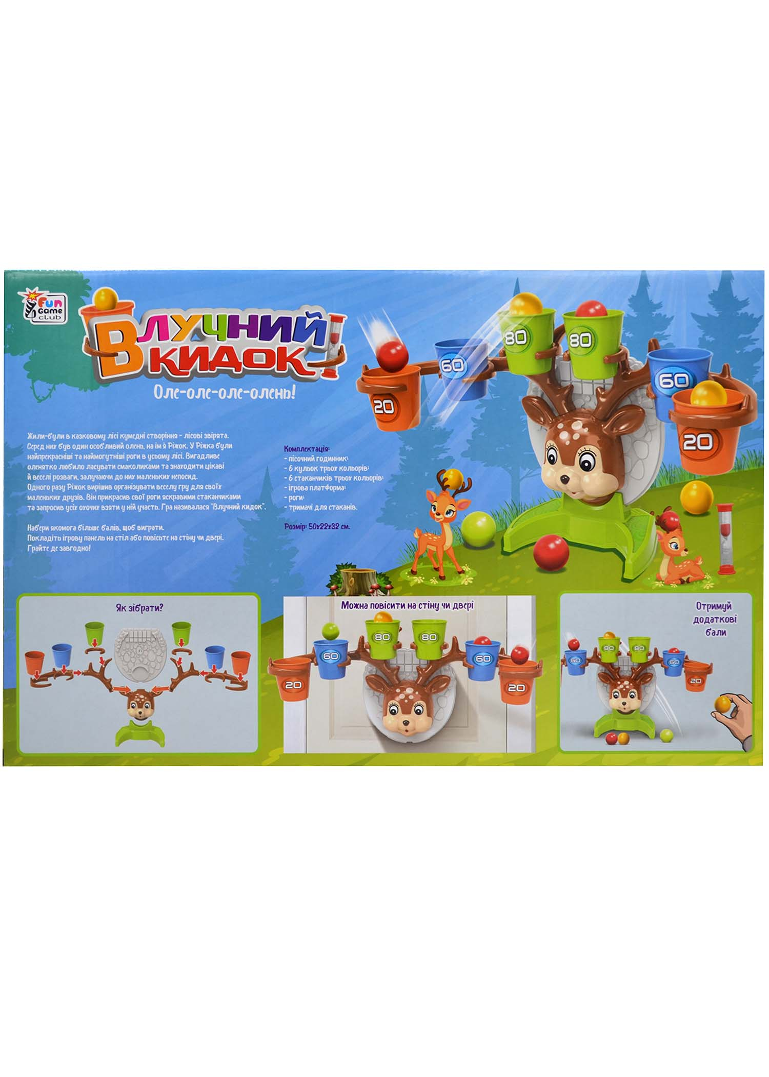 Покладіть ігрову панель на стіл або повісьте на стіну чи двері. Грайте де завгодно та набирайте якомога більше очок, щоб виграти.