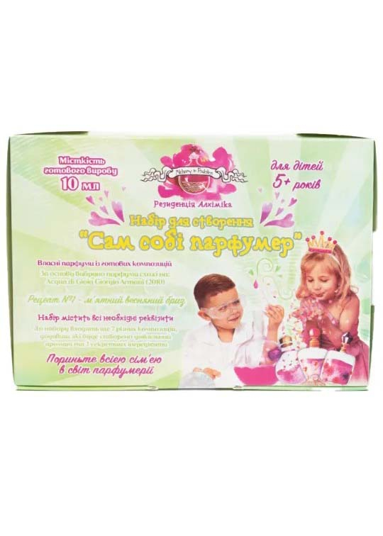 Дані бокси допомагають вашій дитині краще засвоїти науку та пізнати світ.Рецепт №1 – м'ятний весняний бриз (за основу обрані духи схожі на Acqua di Gioia Giorgio Armani)Цей набір допомагає дівчинці відчути себе парфумером, створивши свої улюблені аромати парфумів.Набір включає всі необхідні інгредієнти для створення унікальних духів.У набір входять 7 різних композицій та 2 секретні інгредієнти.