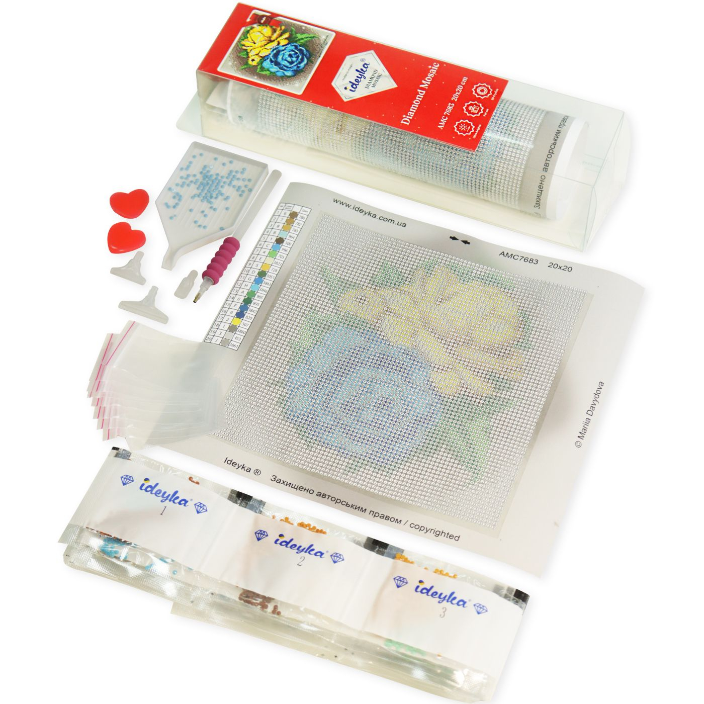 Набір алмазної мозаїки від ТМ Ідейка - це найкращий подарунок для близьких, коханих та рідних людей, який стане незабутнім презентом завдяки сучасному дизайну сюжетів!Викладка картин алмазною технікою є чудовим заняттям для зняття стресу, медитації та релаксу.Завдяки ефекту 5D, картини мають дивовижний, чаруючий об’ємний вигляд, який поглиблюється за допомогою огранювання кожного камінчика.Для вас ТМ Ідейка підготувала найяскравіші та найгарніші набори алмазної мозаїки на підрамнику, котрі не потребують додаткового оформлення в багетну рамку. Після закінчення роботи картина вже має закінчений вигляд і готова прикрашати вашу оселю.Склад набору:- полотно з клейовим шаром і кольоровою схемою, яке оформлено на підрамник галерейним способом,- акрилові стрази згідно комплектації набору (круглі),- спеціальна ручка-стилус для роботи зі стразами з м’яким тримачем та 3 додаткових насадки для нього: для 3-х і 9-ти камінчиків-стразів, та насадка для вирівнювання стразів на полотні,- два гель-клея,- лоток для сортування стразів,- зіп-пакети для стразів,- інструкція.