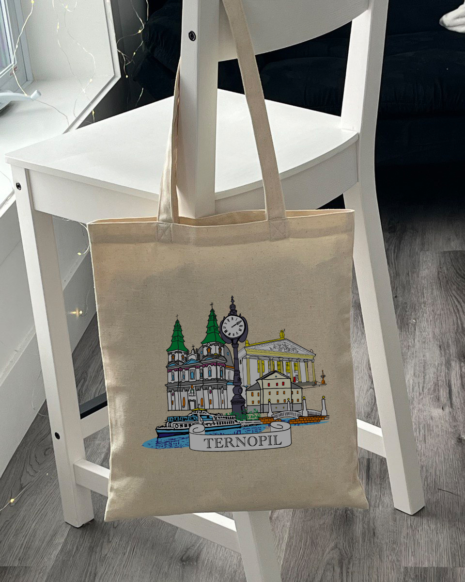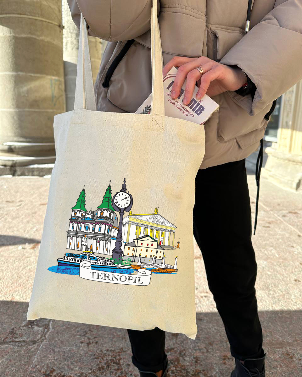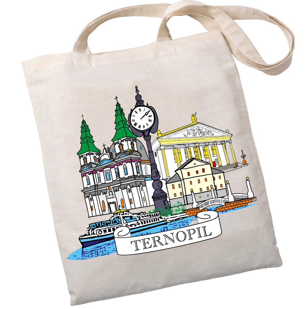 Екошопер Bookopt Тернопіль, кольоровий принт, бежевий
