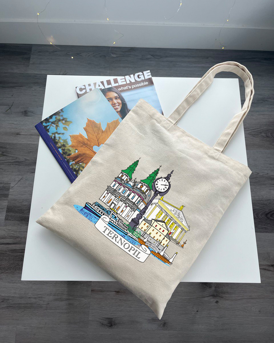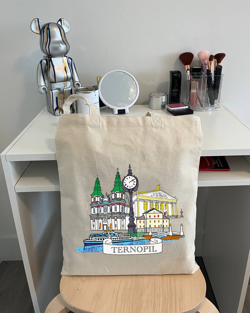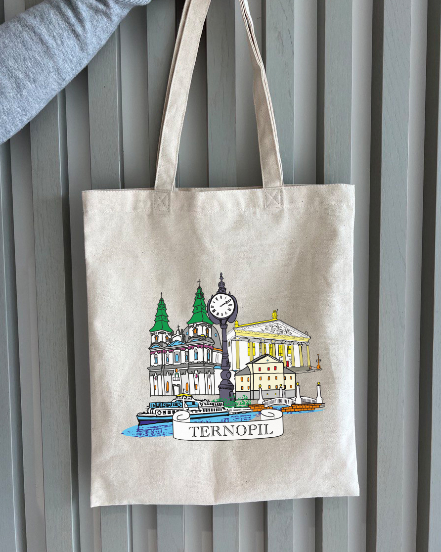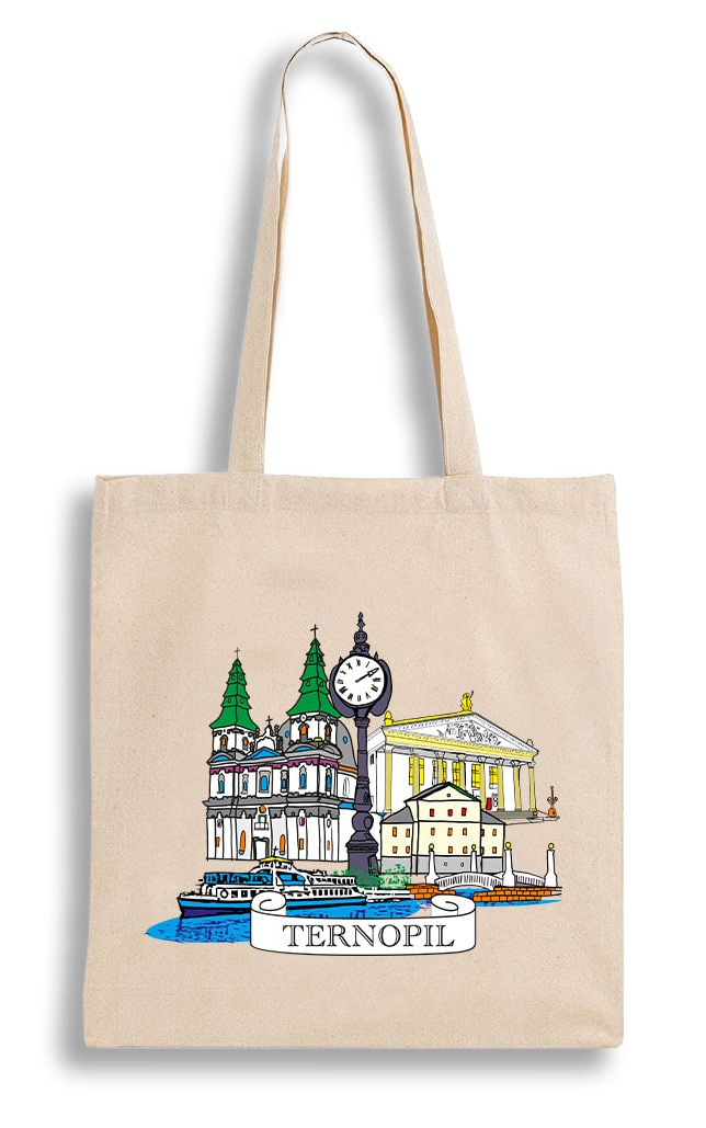 Екошопер Bookopt Тернопіль, кольоровий принт, бежевий
