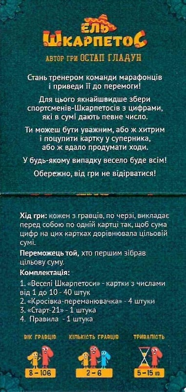 Розважальна дитяча настільна гра під веселою назвою «Ель Шкарпетос» — це шалений марафон з цікавими героями, командами яких керує кожен гравець.