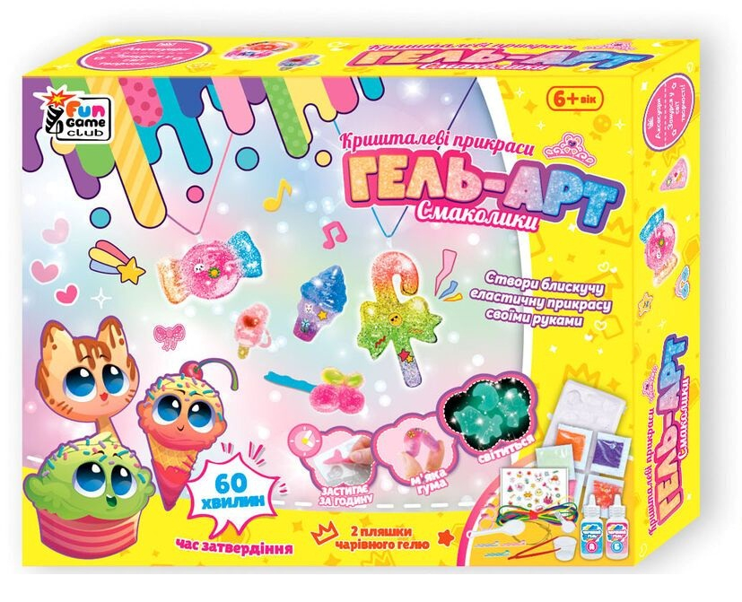 Набір Гель Арт "Смаколики" 2 пляшечки з гелем, молди, склянки, блискітки, основи для прикрас, пінцет, наліпки 41614