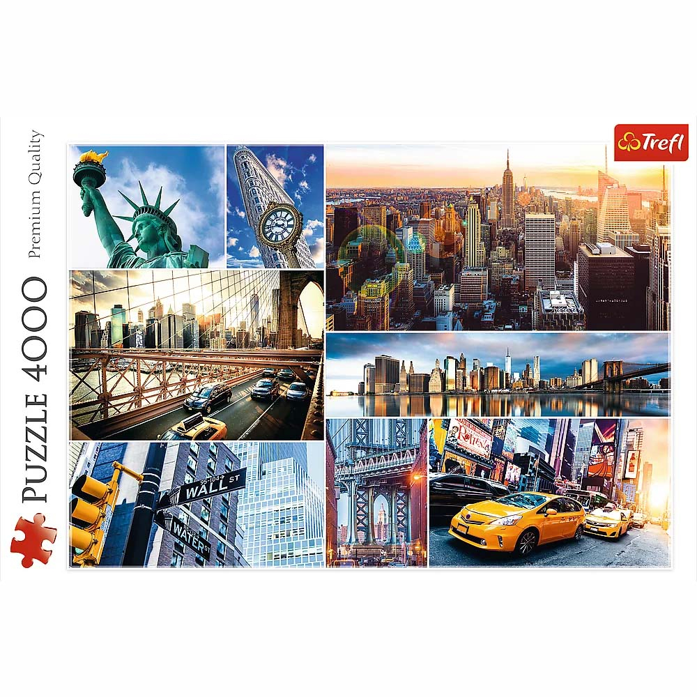 Пазли на 4000 елементів із чудовими фотографіями найвизначніших та найпопулярніших місць Нью-Йорку - Манхеттену, Уолл-стріт, Статуї Свободи та інших, які зображені у вигляді колажу.