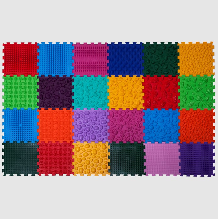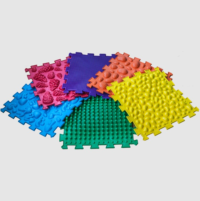 Масажні елементи різної форми оптимальні для тренування м'язів стопи. Розмір одного модуля : 26*26 см