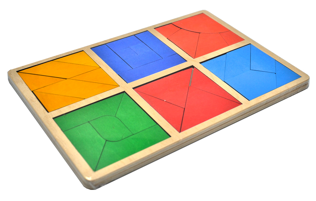Розвиваюча дерев'яна іграшка "Склади квадрат 3-й рівень" дозволить дитині з користю провести час. Ця гра виникла з головоломки, в якій потрібно з декількох шматочків різної форми скласти квадрат. Головоломка була важка навіть для дорослих, але за неї бралися і діти, і безуспішність їх спроб наштовхнула виробника іграшок на думку зробити ряд простіших завдань, які поступово підведуть до вирішення складного. Отримуючи частини квадрата і завдання "Склади квадрат", малюк виконує кілька видів робіт, неоднакових за змістом і за ступенем складності. Наймолодші починають розуміти, що з частин, іноді навіть дуже дивної форми, можна скласти квадрат. Вони нагадують, що необхідно перевертати всі шматочки на лицьову сторону і відбирати частини за кольором або по відтінках кольорів. Таким чином відбувається тренування розвитку кольоровідчуття та кмітливості при вирішенні проблеми частини і цілого, їх можливих взаємозв'язків і взаєморозміщення.