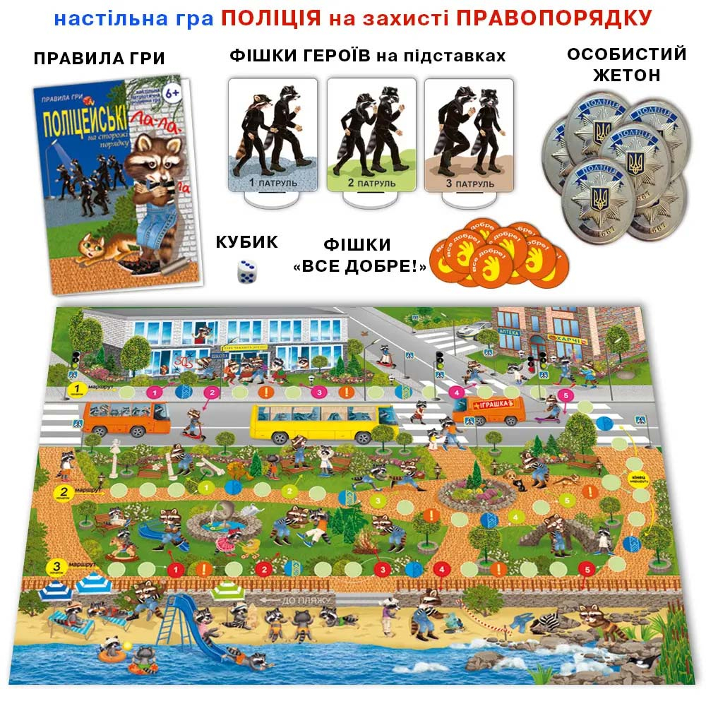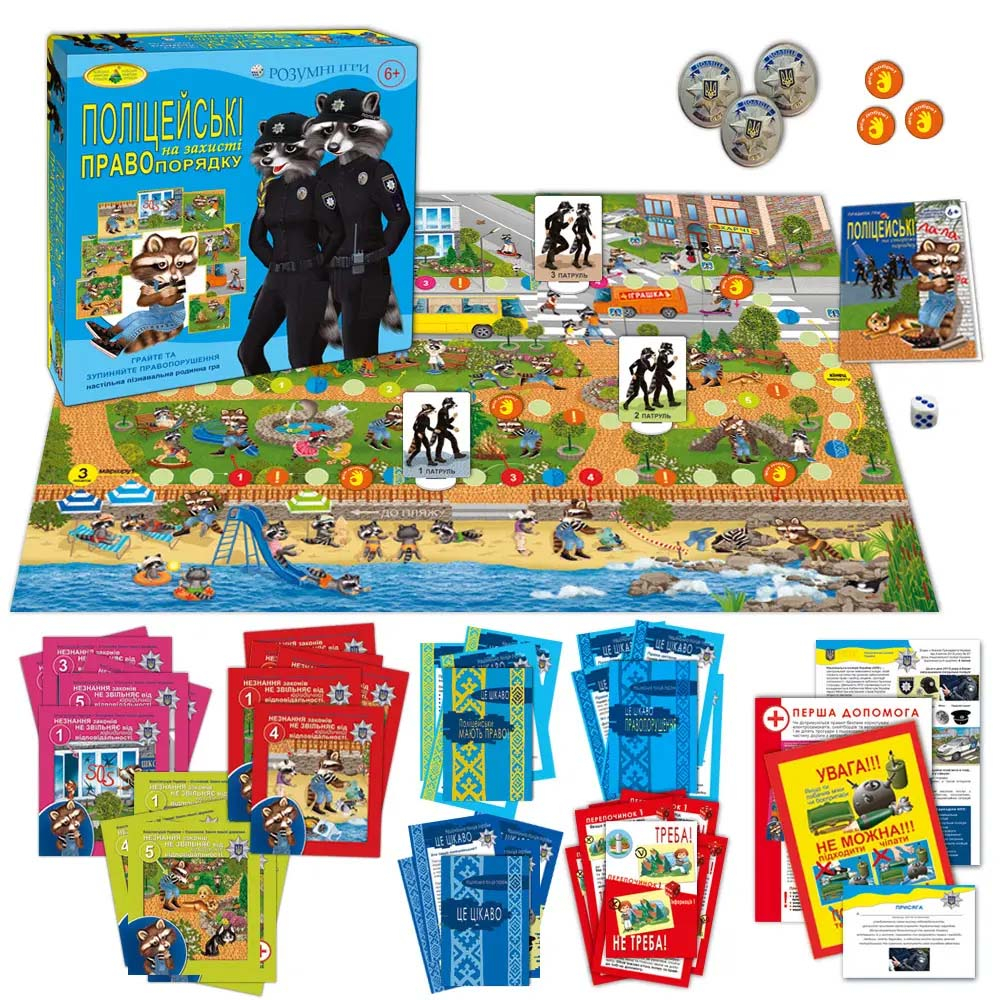 Настільна командна гра ПОЛІЦЕЙСЬКІ НА ЗАХИСТІ ПРАВОПОРЯДКУ — авторська патріотична сімейна гра Олени Рибакової ідеально підійде для сімейного дозвілля та виховання дітей віком від 6 років.