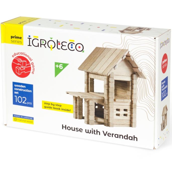 Дерев'яні конструктор IGROTECO Будиночок з верандою 102 деталі