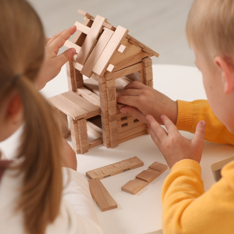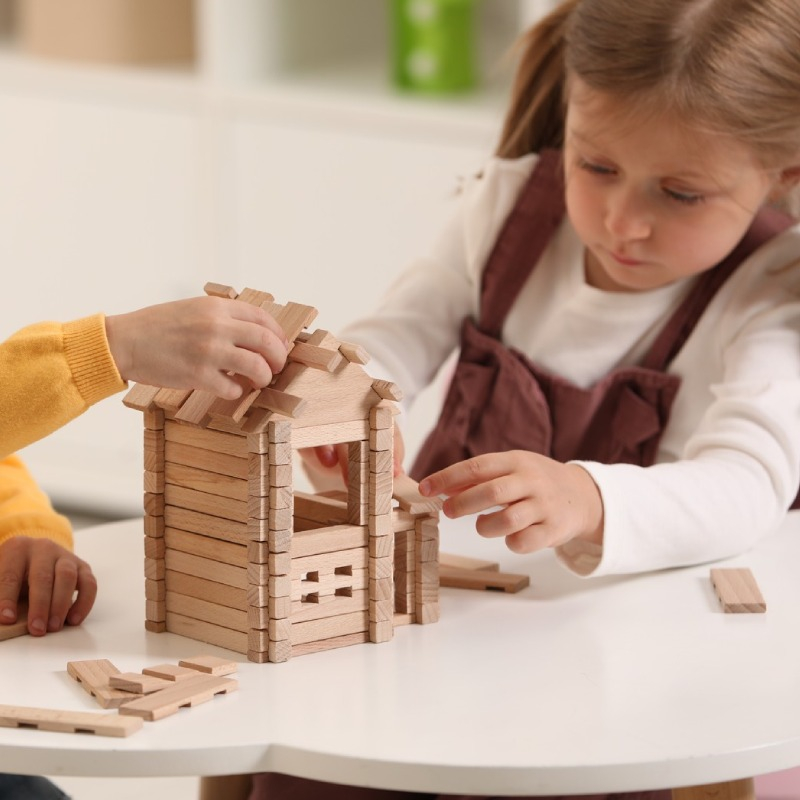 Увага! Як і справжні будинки, наші конструктори радимо починати складати з фундаменту! На рівній твердій поверхні викладіть найнижчий рівень, а потім рівень за рівнем, брус за брусом зводьте стіни, перекладайте деталі паз-в-паз, кріпіть їх, робіть перемички, з’єднуйте прибудови і накривайте дахом! Все як у справжньому житті!