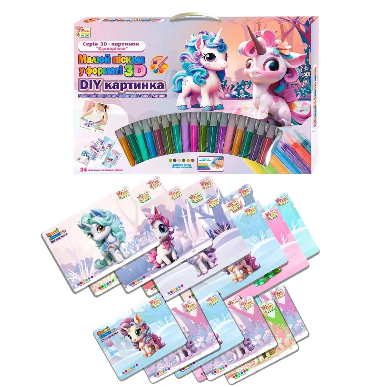 Малюй піском FunGame 44323 24 картки, 16 кольорів піску, 6 мольбертів