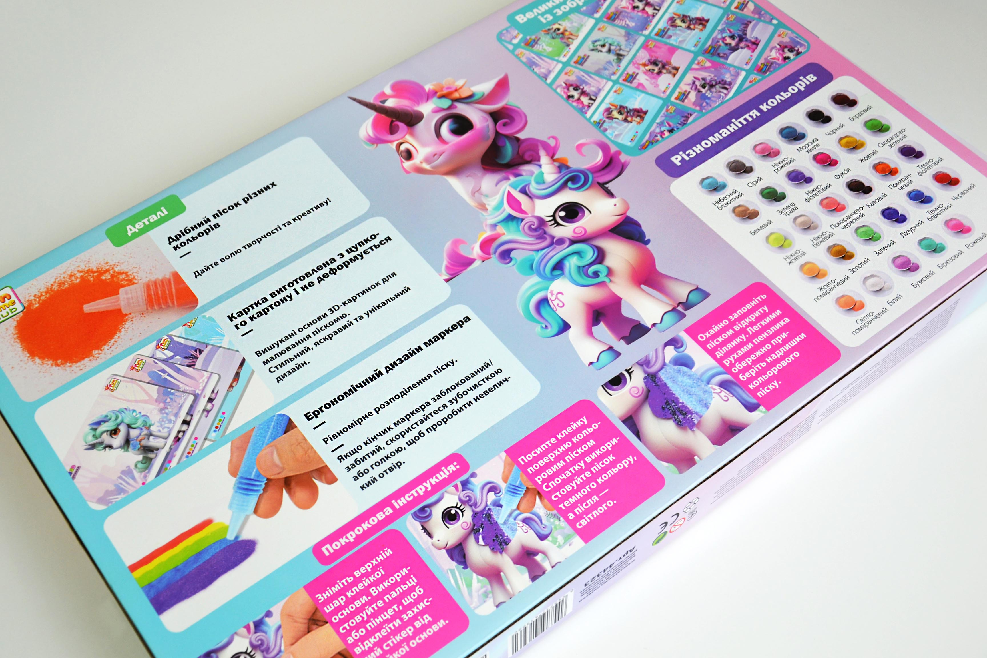 Відкрийте вашій дитині новий світ мистецтва з розмальовками піском! Це унікальний і цікавий спосіб створення картин, який допоможе розвинути фантазію, уяву та дрібну моторику.