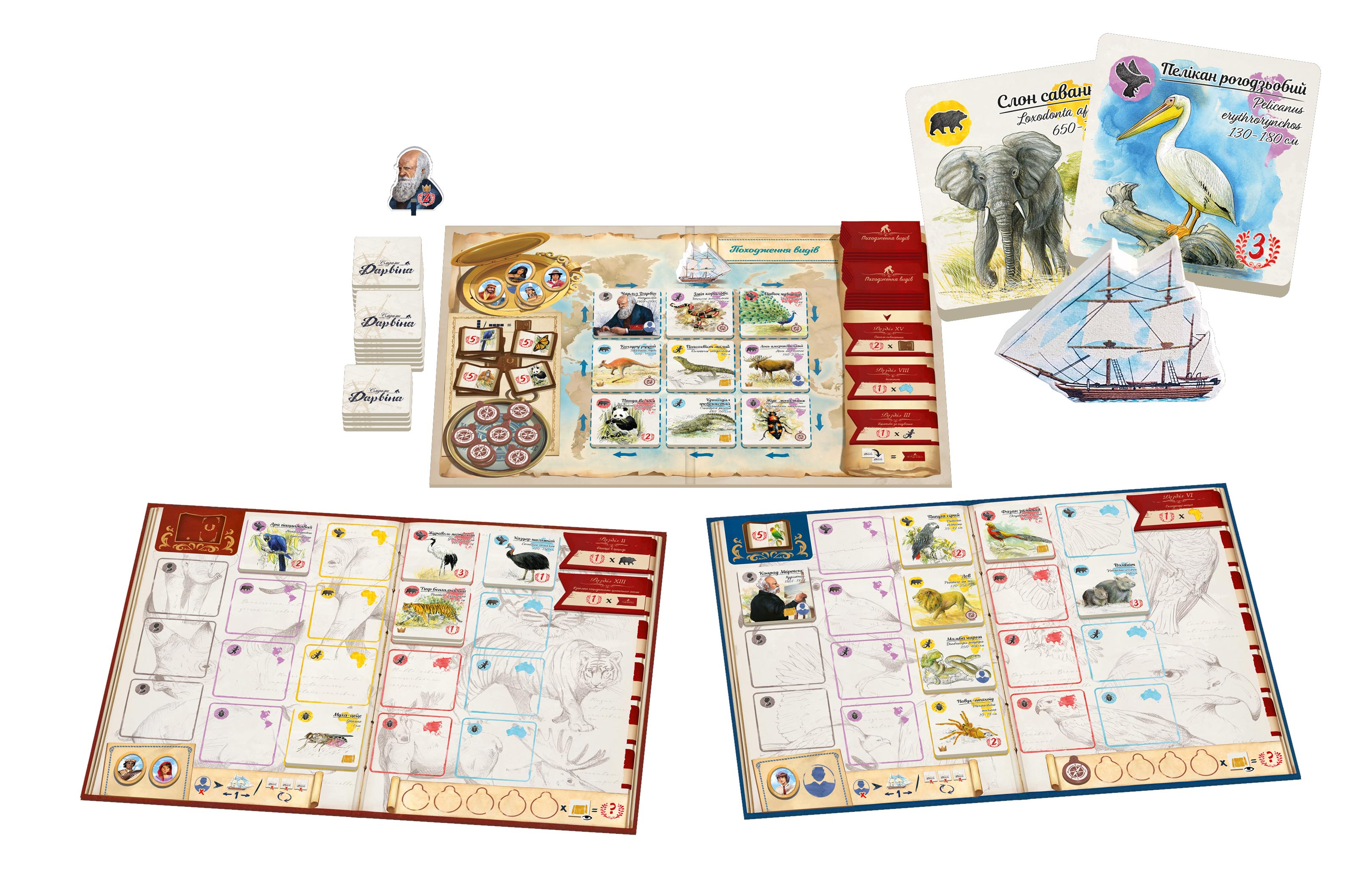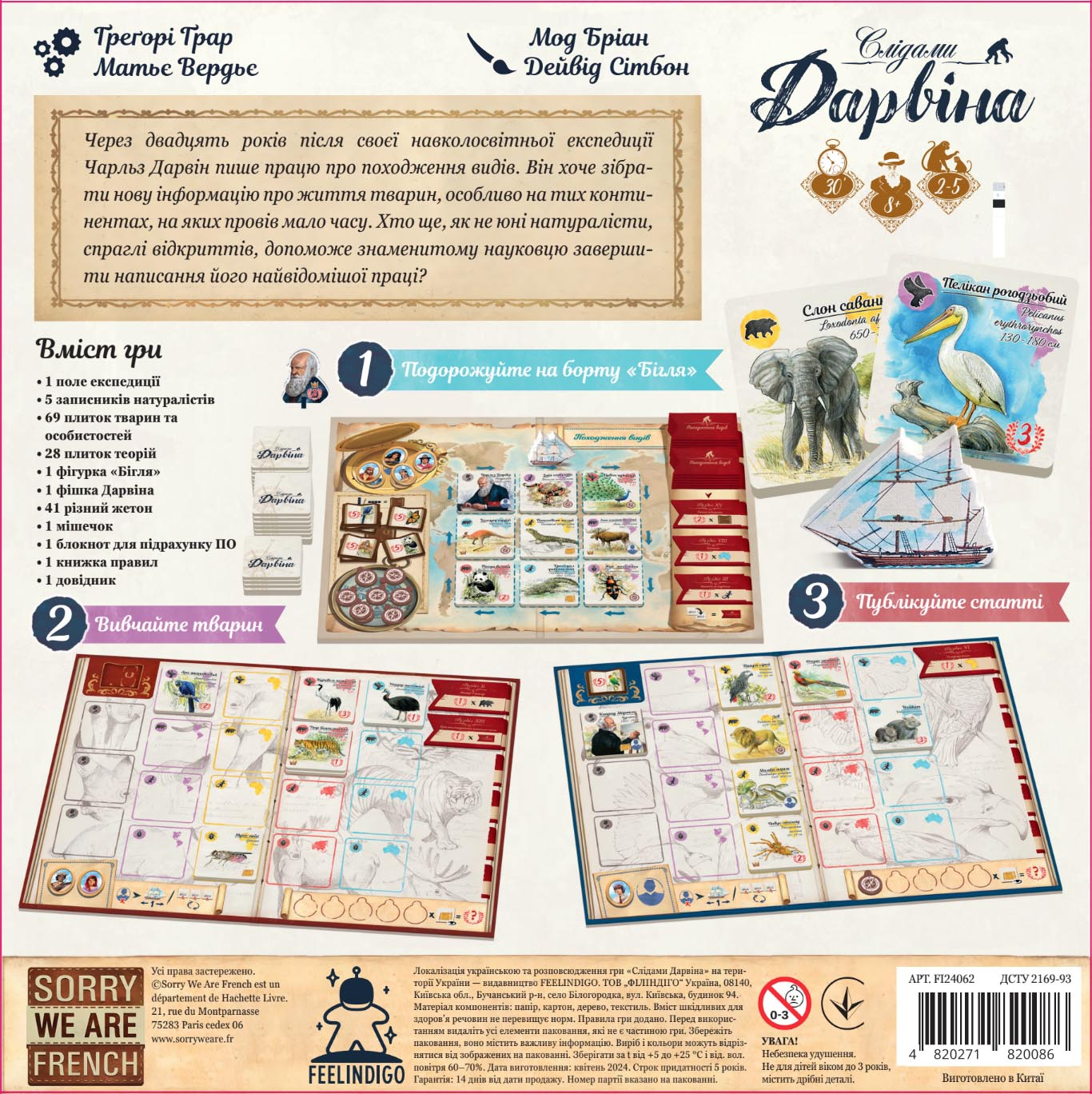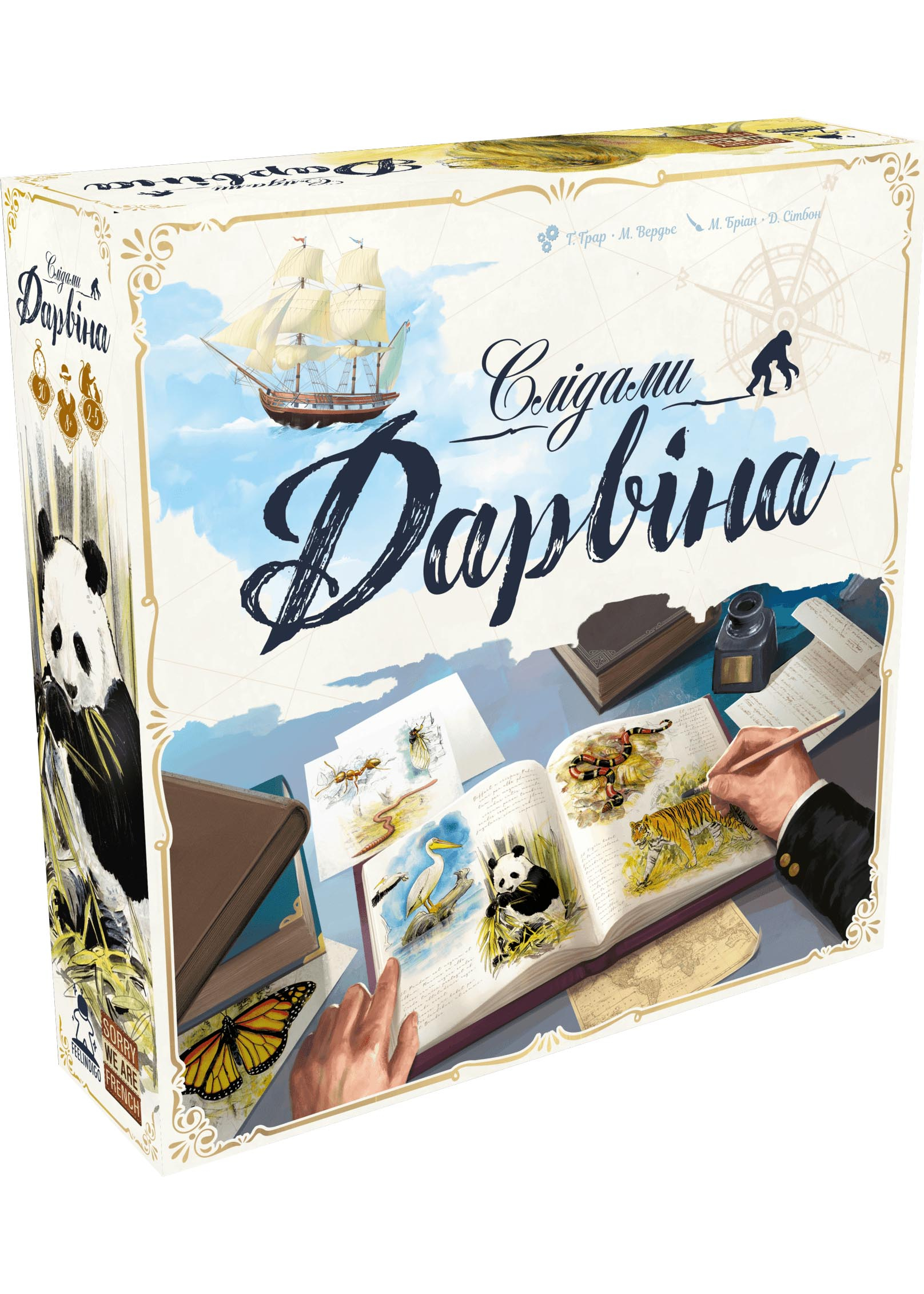 "Слідами Дарвіна" - це захоплива настільна гра, яка переносить гравців у минуле, де вони разом із Чарльзом Дарвіном працюють над його новаторською роботою "Про походження видів".