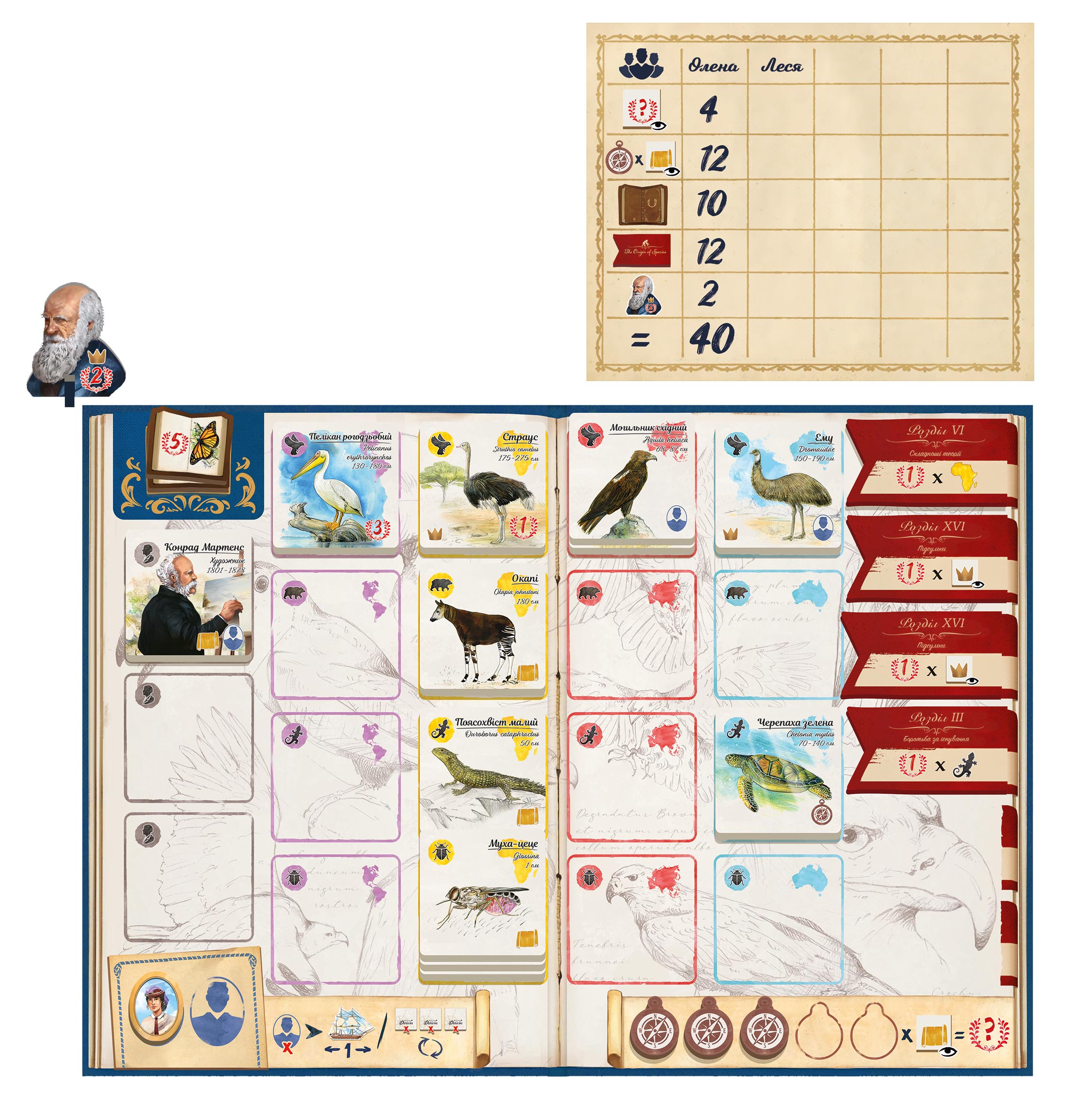 - Вивчення тварин і натхнення: Гравці обирають плитки із зображенням тварин для вивчення або історичних персонажів для натхнення, заносячи їх до свого особистого блокнота натураліста, щоб отримати бонуси та очки.