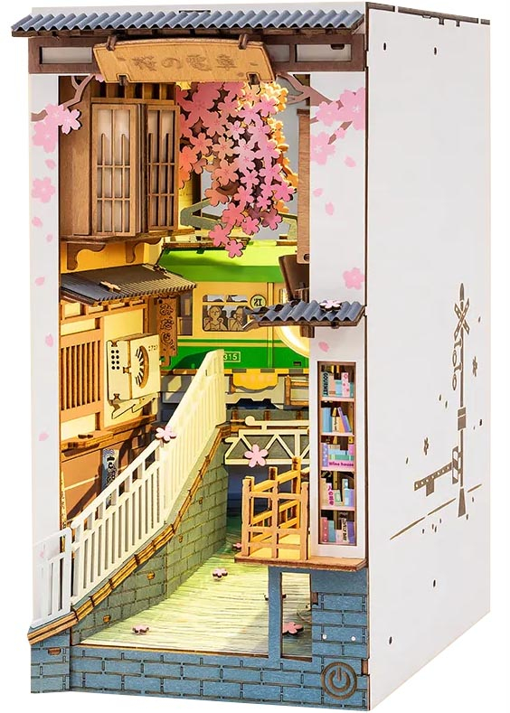 Букнук Rolife не просто декоративний елемент — це 3D модель зі справжнім сюжетом, що переносить вас у серце весняної Японії. Яскраві елементи, як-от сигнальні ліхтарі, квітучі сакури, мініатюрний трамвай та магазини, створюють чарівну атмосферу справжнього міста. Тонко пророблені деталі, включно з голографічною поверхнею річки, вражають своєю реалістичністю.