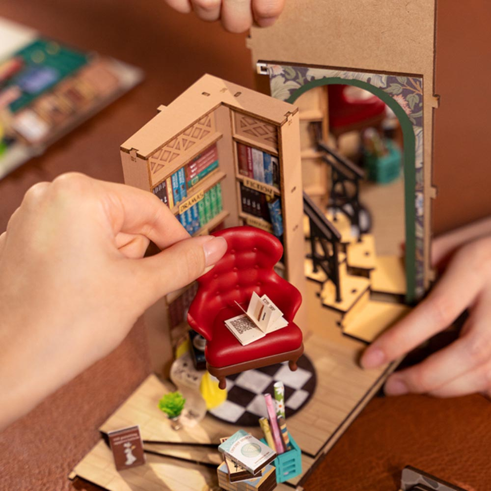 Набір Bookstore TGB07 від Rolife — це не просто декоративна вставка, а справжня магія мініатюрного світу. Ця витончений букнук (книжковий куточок) прикрасить вашу полицю, створивши атмосферу старовинної бібліотеки. Компактний розмір 19,8 × 11,5 × 21,8 см дозволяє розміщувати її навіть у невеликих приміщеннях, зберігаючи при цьому високу деталізацію кожного елементу.