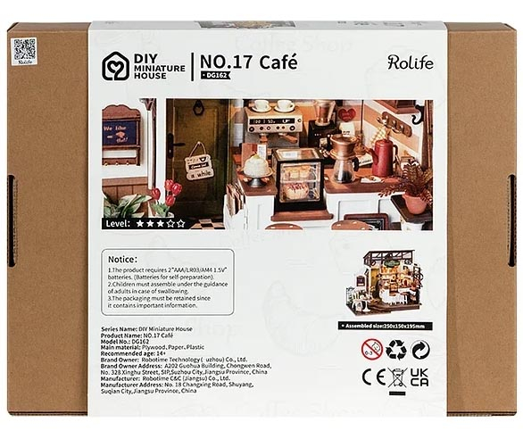 Конструктор Rolife Coffee Shop підійде як новачкам, так і досвідченим любителям мініатюр. Це чудова ідея для подарунка дорослим, підліткам, прихильникам DIY, а також тим, хто цінує унікальні речі. Увімкнене LED-світло додає конструкції атмосфери живого простору.