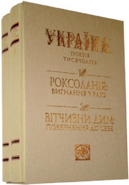 Кілька тисячоліть історії України крізь призму поезії _ така головна ідея антології. Поезія супроводжувала українську націю впродовж усього її існування; саме Поезія спонукала українців до боротьби, непокори утискам і гнобленню, до самопізнання, творення. Поезія сприяла націєтворенню і віддзеркалювала всі _ як трагічні, так і героїчні _ аспекти історії України. Роксоланія: вигнання з раю. Том 1. До першого тому ввійшли стародавні поетичні памятки _ рештки епосів протошумерів, аріїв і скіфів, фрагменти з давньогрецької і давньоримської поезії з України або про Україну прадавню, пісенна архаїка давніх слов`ян, уламки норманських і тюркських епосів, тематично прив`язаних до нашої правітчизни. Том 2. Другий том антології присвячено Українському Поетичному Світові, його найяскравішим представникам. Від зародження української літератури (Іван Котляревський, Левко Боровиковський, Амвросій Метлинський) до поетів-шістдесятників (Іван Драч, Ліна Костенко, Павло Мовчан) та від поетів Російської імперії...
