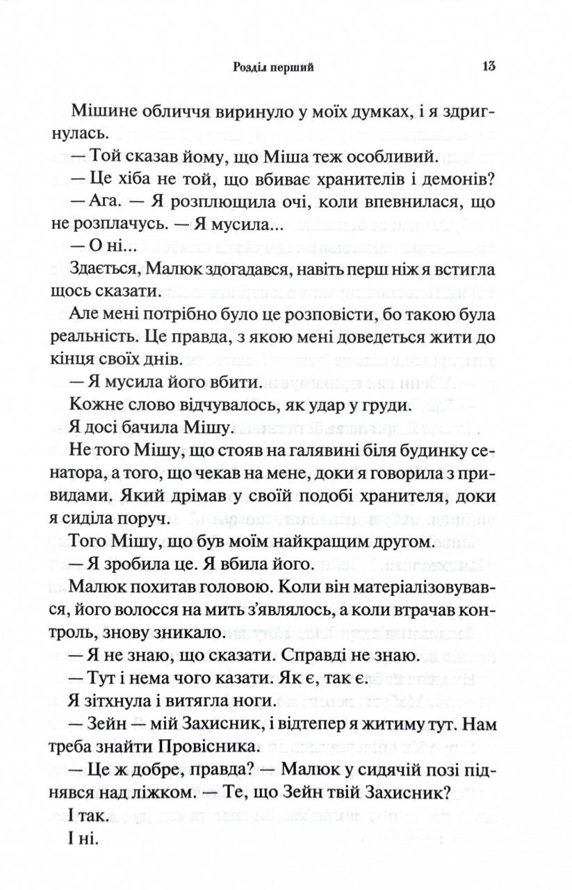 Головні герої роману — напівангел Триніті та хранитель Зейн — опиняються в епіцентрі апокаліптичної загрози. Щоб врятувати світ, вони змушені укласти союз навіть із демонами. Їхнє головне завдання — знайти і зупинити Провісника, загадкового ворога, який знищує хранителів і демонів без жодної логіки.