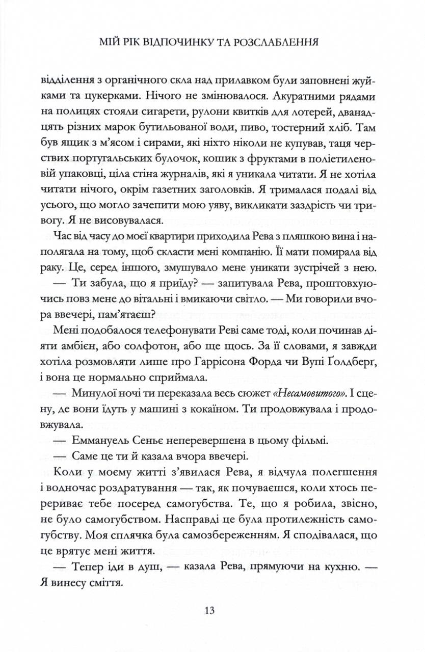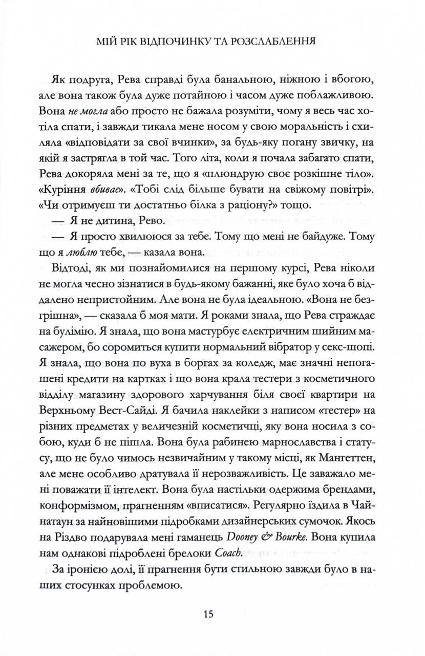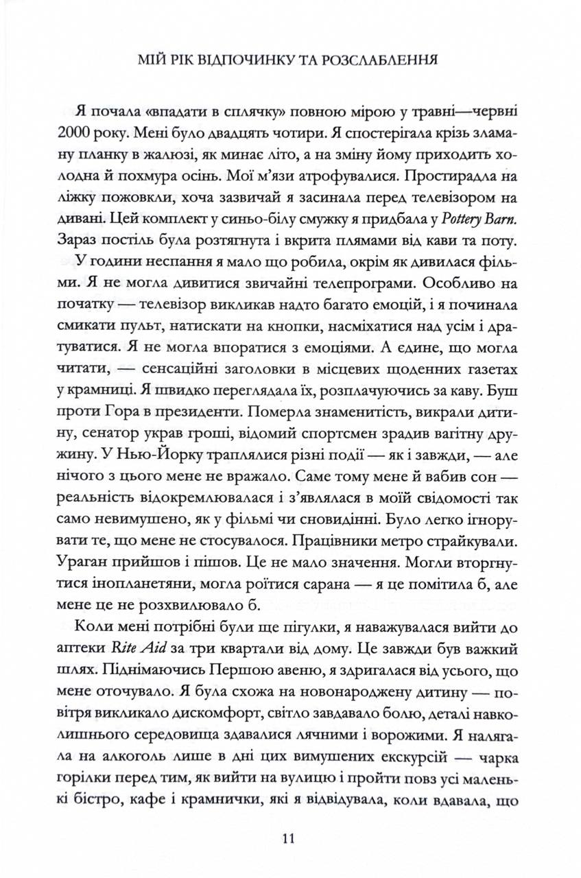 Мій рік відпочинку та розслаблення — це глибокий психологічний роман американської письменниці Оттесси Мошфег, який зачіпає важливі теми особистої кризи, самотності та пошуку себе.