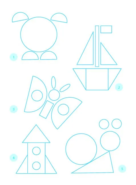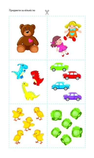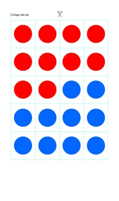 картонна основа; розгортки шаблонів — 11 шаблонів; картки для математичних ігор — 56 гри;опис математичних ігор; складання інтерактивної книжки. Бонус для розваги — наліпки-фігури для складання картинок.