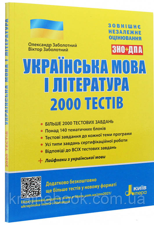 Українська мова та література. ЗНО+ДПА. 2000 тестів для підготовки до ЗНО. Заболотний О., Заболотний В.