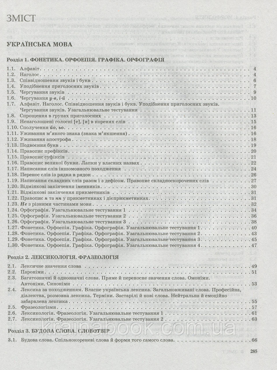 УКРАЇНСЬКА МОВА Розділ 1. ФОНЕТИКА. ОРФОЕПІЯ. ГРАФІКА. ОРФОГРАФІЯ. Розділ 2. ЛЕКСИКОЛОГІЯ. ФРАЗЕОЛОГІЯ Розділ 3. БУДОВА СЛОВА. СЛОВОТВІР Розділ 4. МОРФОЛОГІЯ Розділ 5. СИНТАКСИС. ПУНКТУАЦІЯ УКРАЇНСЬКА ЛІТЕРАТУРА Розділ l. УCHA НАРОДНА ТВОРЧІСТЬ. ДАВНЯ УКРАЇНСЬКА ЛІТЕРАТУРА Розділ 2. ЛІТЕРАТУРА КІНЦЯ ХVІІІ- ПОЧАТКУ ХХ ст. Розділ 3. ЛІТЕРАТУРА ХХ СТОЛІТТЯ Розділ 4. ПОВНИЙ КУРС УКРАЇНСЬКОЇ ЛІТЕРАТУРИ