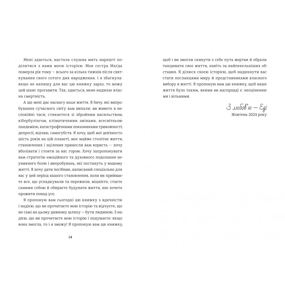 Книга Балерина в Аушвіці — це адаптоване для підлітків видання бестселера вибір, яке написала всесвітньовідома психологиня та вижила в Голокості Едіт Іва Еґер. У цьому зворушливому й водночас потужному творі авторка розкриває свою справжню історію юності, що припала на трагічні роки Другої світової війни.