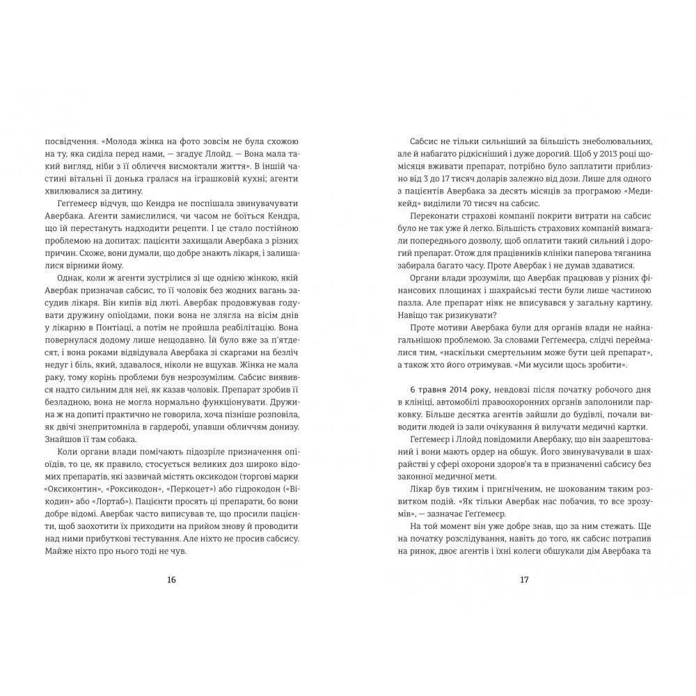 Книга Евана Г’юза базується на справжніх подіях. Вона демонструє, як жадоба до прибутку та відсутність етики здатні зруйнувати людські долі та перетворити медицину на поле для махінацій. У центрі сюжету — не тільки підприємці, а й справжні жертви опіоїдної кризи в США.