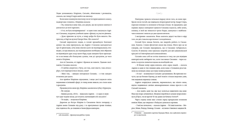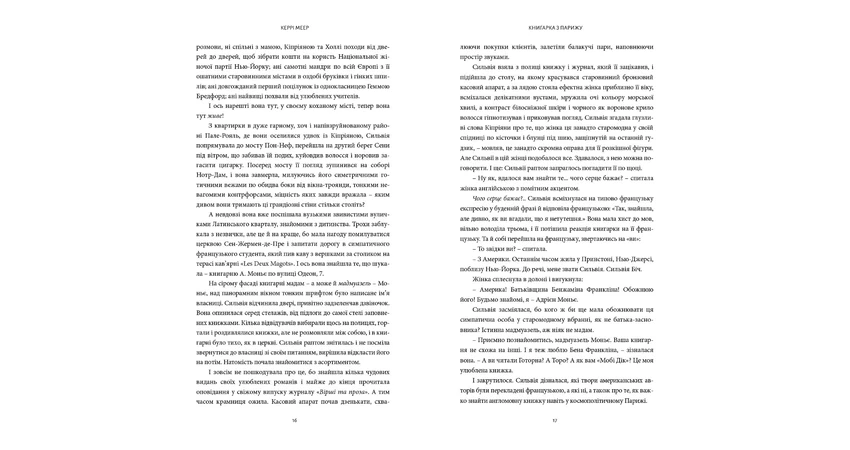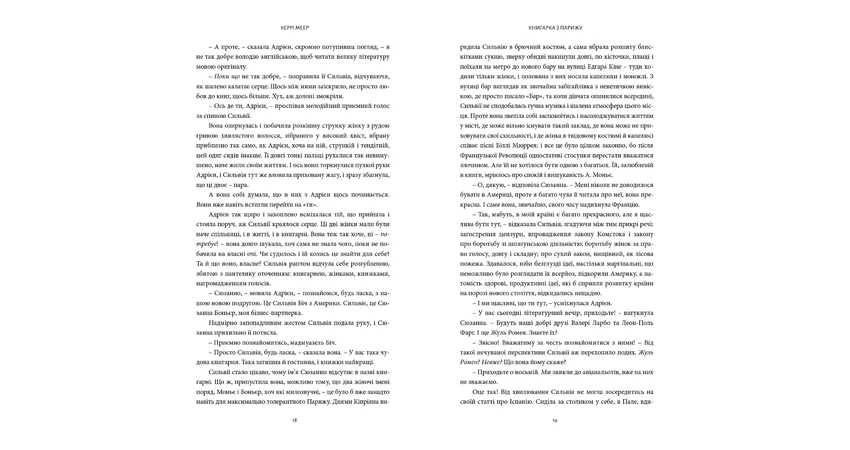 "Книгарка з Парижа" особливо цікава тим, що це книжка про книжки. І про двох славетних жінок, які понад усе любили книжки і одна одну. В центрі подій – реальні особи, Сильвія Біч та Адрієн Моньє, засновниці унікальних книгарень-близнючок, які були осередком культурного життя у міжвоєнному (1919-1940 рр.) Парижі. Головна книжка, довкола якої все обертається, – роман Джеймса Джойса "Улісс", свого часу заборонений у США, і, попри заборону, виданий в Парижі відважною Сильвією Біч під маркою її книгарні "Шекспір і компанія". Це велика пригода і велика історія любові, інтелектуальна приманка для допитливих читачів." – Наталя Трохим