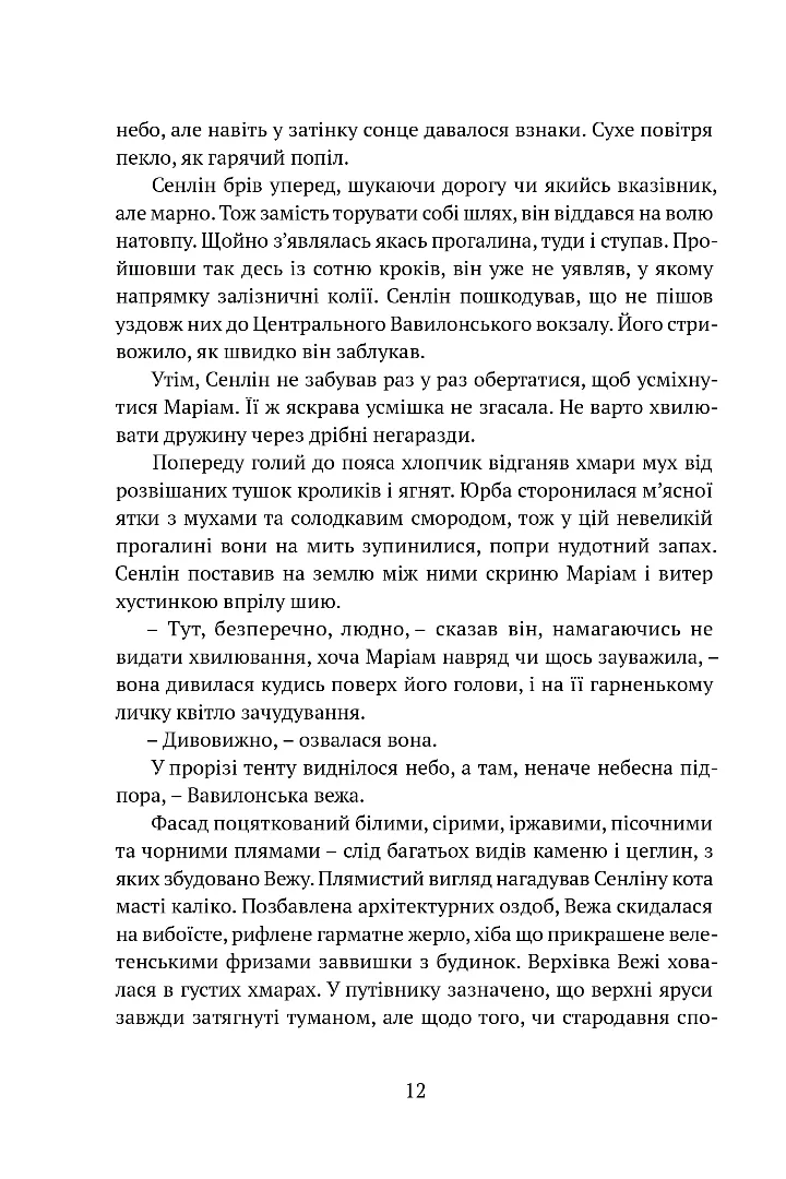 Після загадкового зникнення дружини Сенлін потрапляє в глибини Вавилонської вежі — насиченого варіативними рівнями світу, де кожен поверх приховує нову небезпеку, дивовижних мешканців та соціальні і моральні випробування. Пошук Маріам змушує героя йти далі, не зупинятись перед труднощами й не боятися відкривань. Книга сповнена символізму, філософських роздумів та тонко змальованих емоційних трансформацій героя.