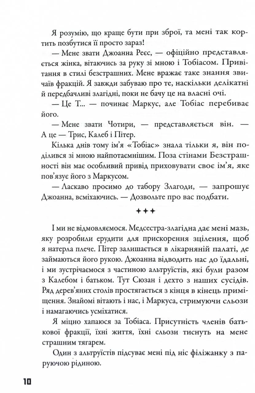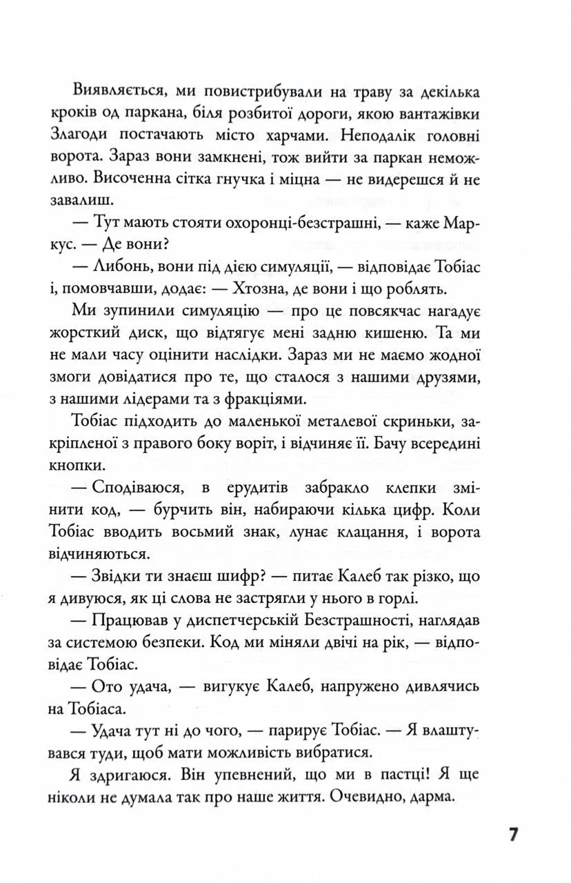 Придбайте цю книгу, щоб продовжити подорож разом із Трис у світі фракцій, таємниць і виборів, які змінюють життя.