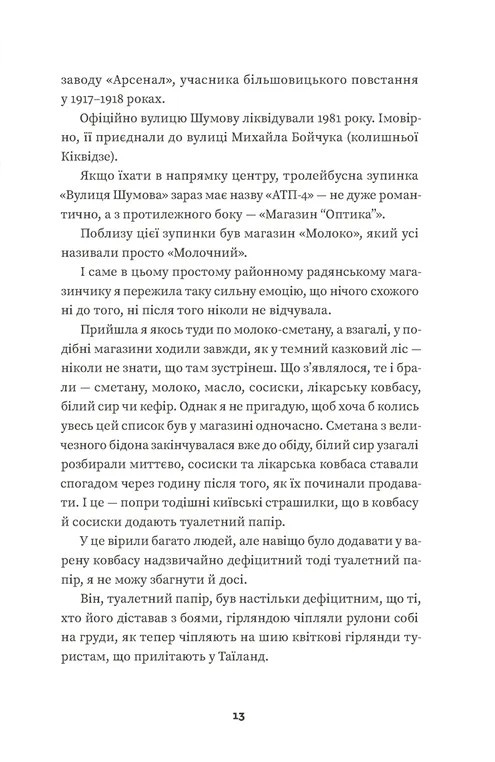 Це видання — чудовий приклад сучасної української автобіографічної літератури. Для тих, хто зростав у Києві або має з ним щемкі спогади, книга стане особливо цінною. Крім особистих історій, авторка розповідає про зміни у місті — нові назви вулиць, темп життя, зміни у суспільстві, ніби фіксуючи той Київ, що вже зникає, але назавжди залишається в серці.