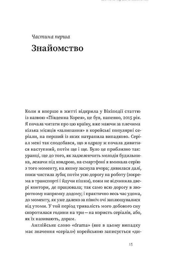 Авторка пише від першої особи, занурюючи читача в атмосферу щоденних вражень, емоцій і відкриттів. Завдяки її щирому стилю текст читається легко, а кожен розділ наближає до розуміння складного, але дивовижного світу Південної Кореї.