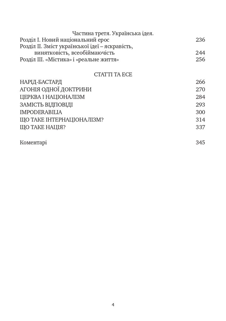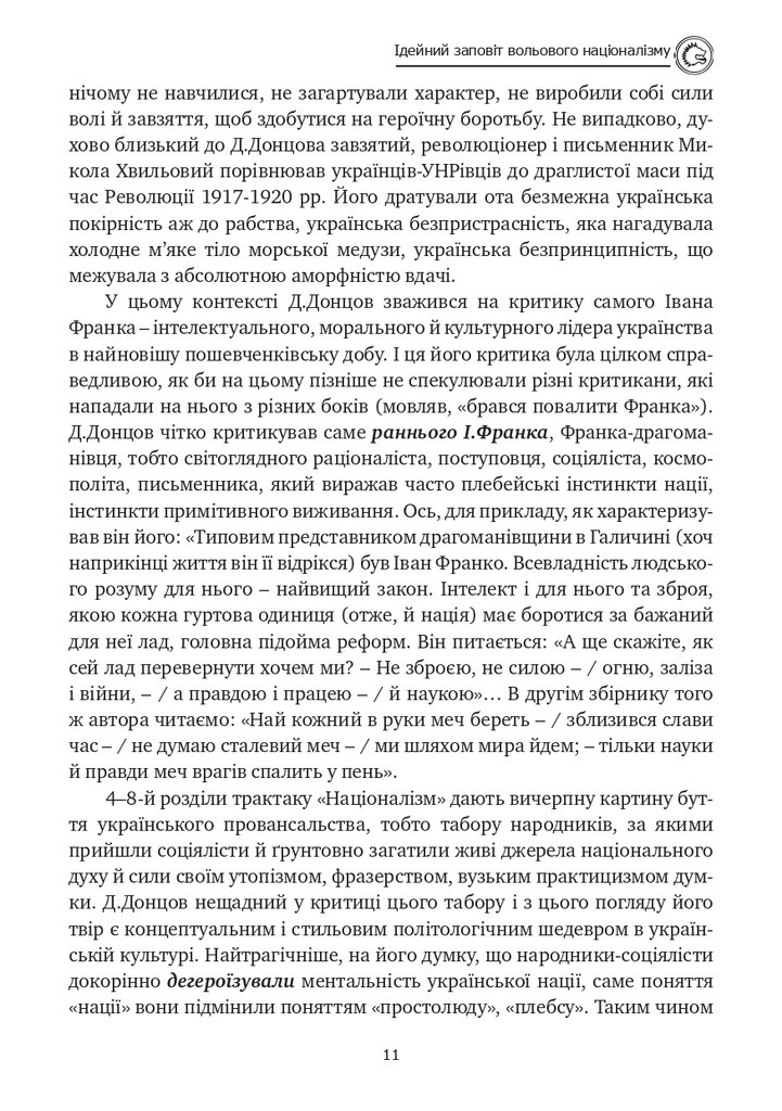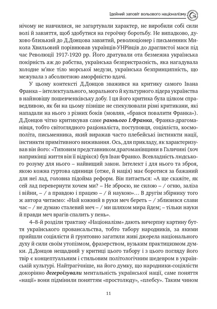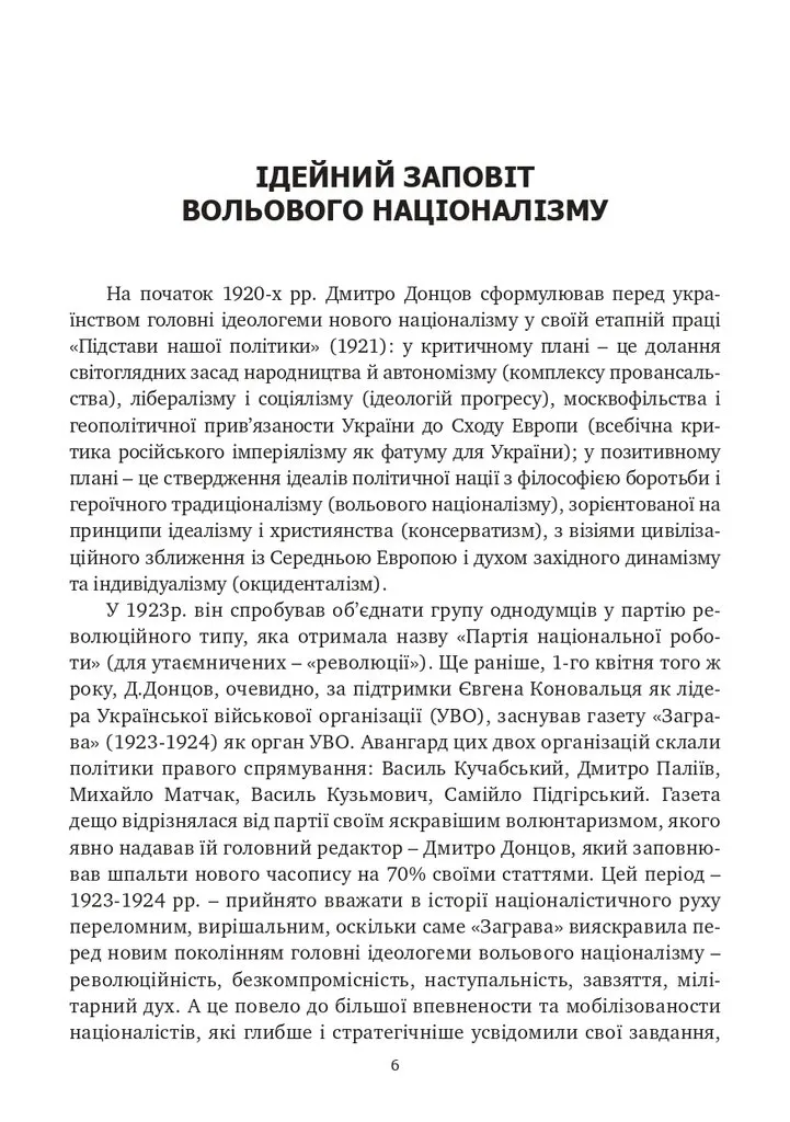 Окрім трактату, у збірку увійшли маловідомі, але концептуально важливі статті 1920-х років, у яких Донцов розвиває філософські постулати модерного націоналізму: воля, активізм, етика героїзму й культурна самодостатність. Вперше надрукована стаття Замість відповіді є особливим внеском до розуміння інтелектуального контексту епохи.