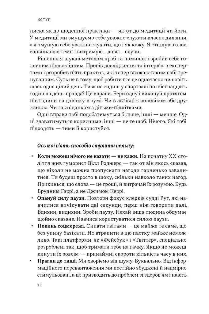 Книга є справжнім переворотом у розумінні комунікації. Автор показує приклади з життя відомих особистостей, зокрема, пояснює, як мовчання зіграло ключову роль у перемозі Байдена на виборах.