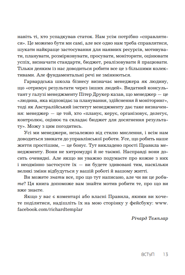 Це не просто набір порад — це практичний посібник з ефективного управління. У своїй книзі Темплар зібрав десятки перевірених часом принципів, які допомагають будувати кар'єру у бізнесі, досягати цілей, розуміти свою команду та надихати її на високі результати.