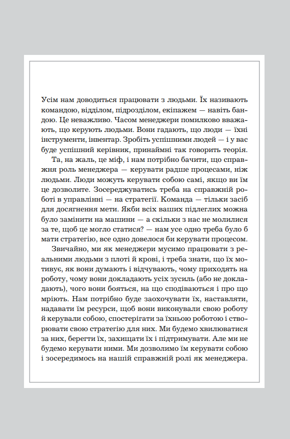 Структурованість викладу, легкість у сприйнятті та велика кількість життєвих прикладів роблять цю книгу обов’язковою до прочитання для кожного управлінця.