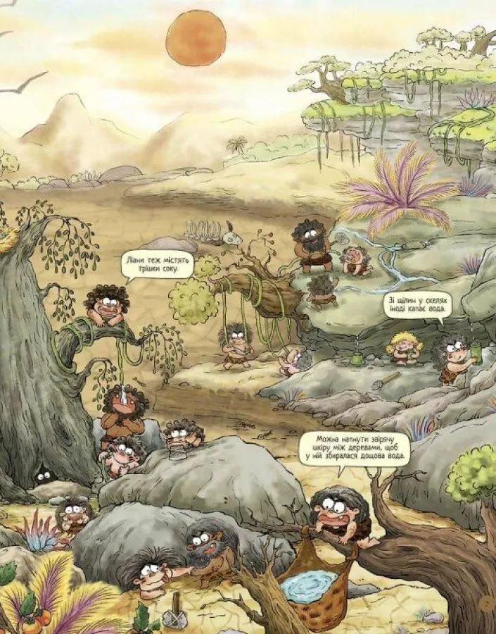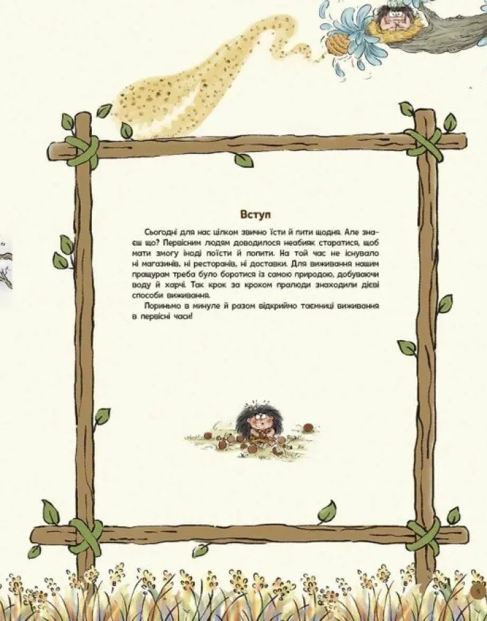 Книга Життя первісних людей. Що з'їсти? подає складні наукові дані у доступній формі. Вона створена спеціально для дітей молодшого та середнього віку. Завдяки гумору, мальованим персонажам і яскравим ілюстраціям дитина легко зануриться у світ доісторичних пригод, порівняє життя древніх людей зі своїм щоденням і краще зрозуміє, як формувалися звички харчування.