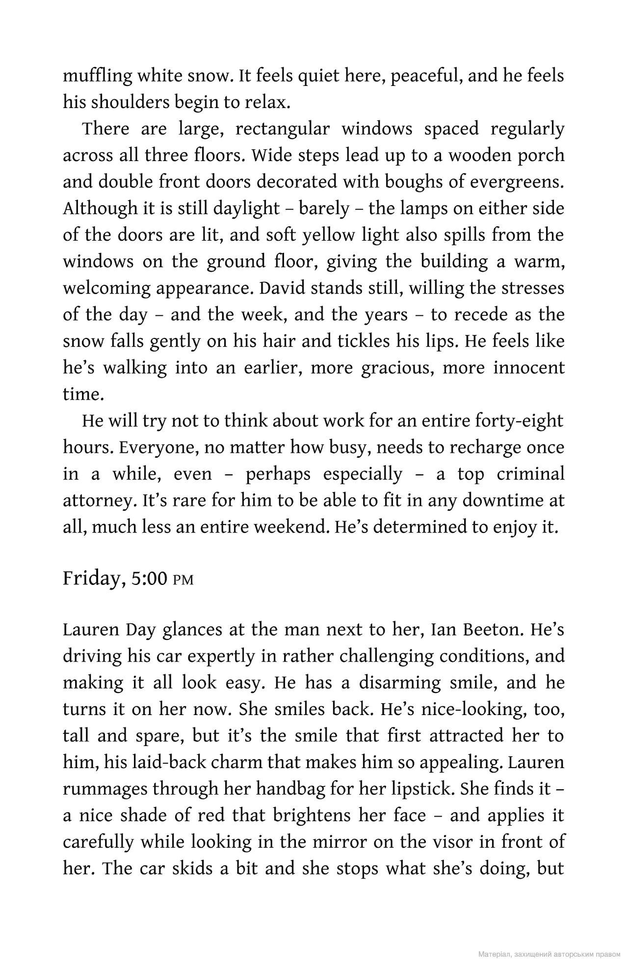 Ідеальна втеча до красивого, віддаленого готелю обертається смертельною пасткою в цьому клаустрофобному, напруженому та захопливому трилері від авторки №1 за версією Sunday Times — Шарі Лапени.