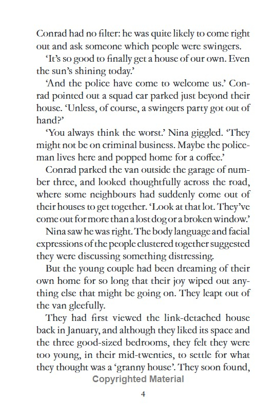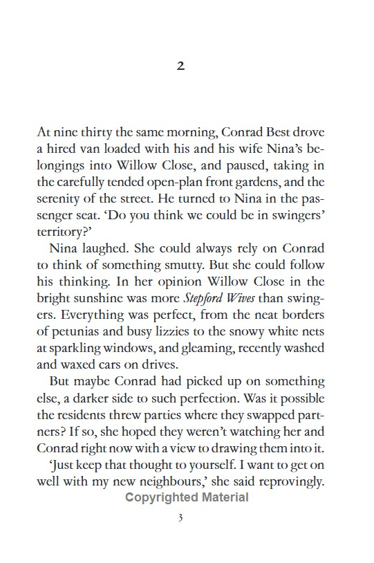 On the day Nina and Conrad Best move into their new home in picture-perfect Willow Close, a body is discovered.