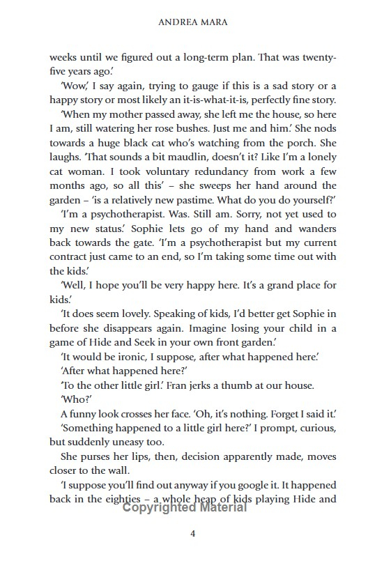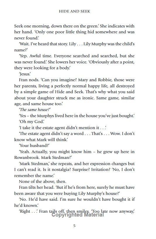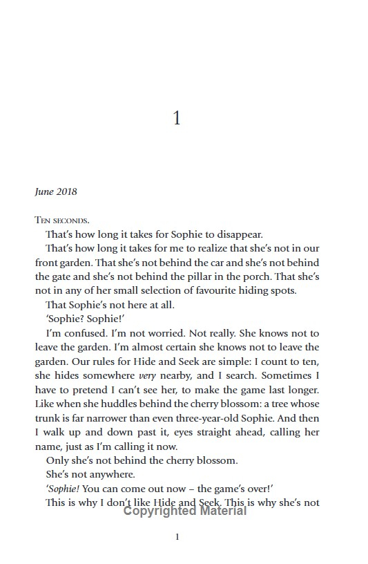 Close your eyes. Count to ten. And when you open them, your child is gone... A top ten bestselling, twisty and compelling thriller about a little girl who goes missing during a game of hide and seek.