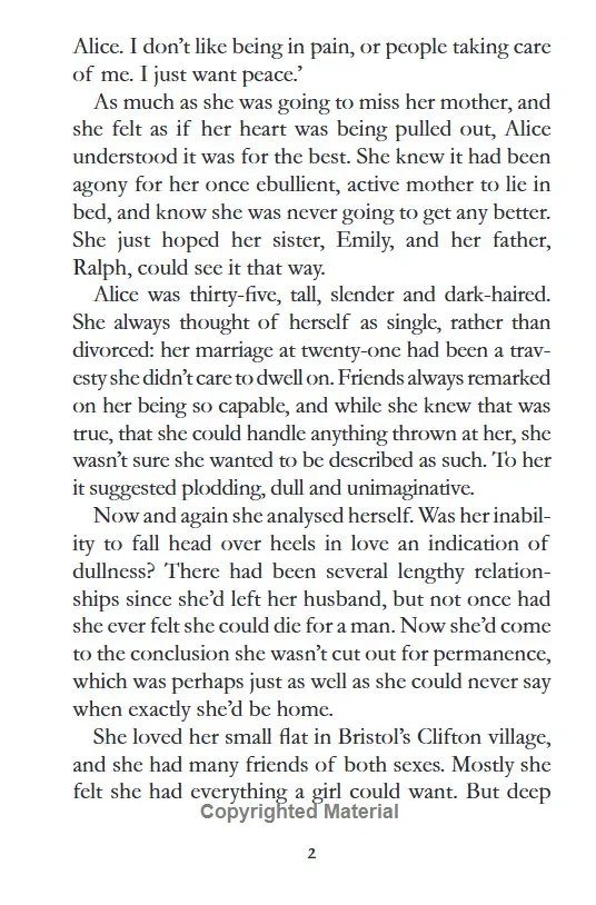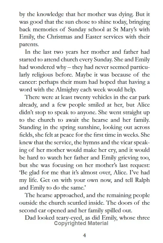 After her mother's funeral, Alice Kent is approached by a man who insists he's her real father. Initially upset and disbelieving, Alice soon discovers that tugging at this loose thread unravels the expertly woven tapestry of lies which was her mother Sally's life.