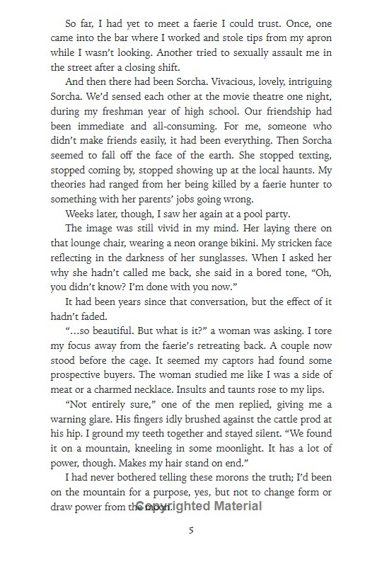 Fortuna Sworn is the last of her kind. Her brother has disappeared, leaving her alone. She hides among humans, spending her days working at a bar and her nights searching for him - until she catches the eye of a powerful faerie.
