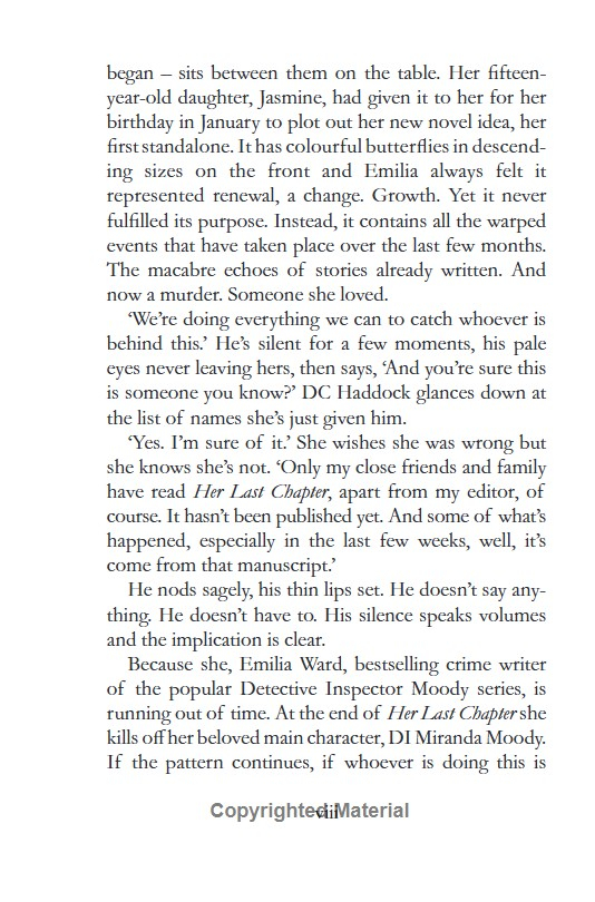 But when Emilia starts her tenth novel, life takes a disturbing turn: an incident straight out of one of her novels occurs in real life. Just a coincidence, she thinks.