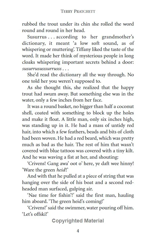 Discover master story-teller Terry Pratchett’s incredible Discworld in this first book in the Tiffany Aching series . . .Tiffany Aching wants to be a witch when she grows up . . .A proper one, with a pointy hat. And flying, Tiffany has always dreamed of flying (though it's cold up there, and you have to wear really thick pants, two layers).And as the twentieth granddaughter of her Granny Aching: shepherdess extraordinaire, and protector of the land, Tiffany knows the most important thing a real witch can do is protect others with their magic. So, when the monsters of Fairyland kidnap her brother, Tiffany decides it’s up to her to defend her home, even if she’s only armed with a frying pan and her common sense.Luckily she has some very unusual help: the local Nac Mac Feegle – a.k.a the Wee